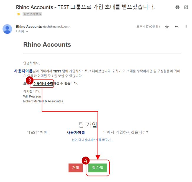 이용자들은 초대 받기 전 모두 회사 이메일을 통해 라이노계정 생성 완료된 상태이어야 합니다.